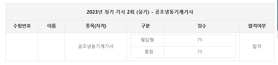 2023년 정기 기사 2회차에 '공조냉동 기계기사'에 합격하였습니다.